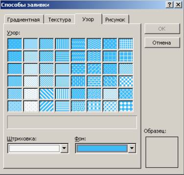 2. В раскрывающемся списке, размещенном в нижней части диалогового окна, выбрать элемент Способы заливки. На экране появится набор вкладок Способы заливки (рис. 34.2), с помощью которых выбирается один из следующих эффектов: