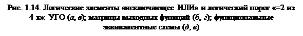 Так, на рис.1.14 приведены УГО элемента исключающее ИЛИ с тремя входами, УГО элемента логического порога «=2 из 4-х», карты Карно их выходных функций и функциональные эквивалентные схемы.