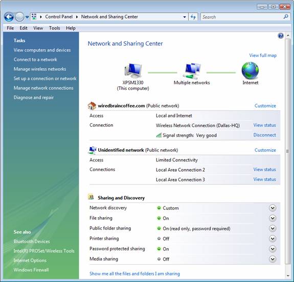 Вот центр управления сетями и общим доступом в Windows Vista, который уже знаком многим из нас: