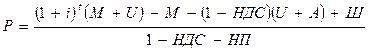 N1 = М + (1 - НДС) (U + А) + (1 - НДС - НП) Р - Ш,