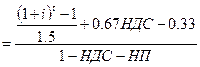 Из нее видно, что при ставке НДС 20%, при ставке налога на прибыль 35% (НП = 0,35) действие инфляции усиливается в 2,22 раза ( ).