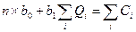 Анализ зависимости между издержками и количеством выпускаемой продукции в динамике позволяет для функции издержек выбрать также линейную форму связи вида С = b0 + b1 x Q. Неизвестные параметры b0 и b1 также находятся по методу наименьших квадратов на основе составления и решения системы нормальных уравнений вида