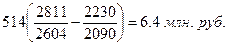 514 х 1,067 - 514 = 34,4 млн. руб.