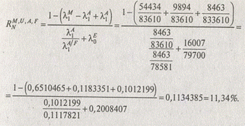 4.1. Рассчитываем условную рентабельность по скорости оборачиваемости основного капитала при условии, что изменялись материалоемкость, трудоемкость, амортизациемкость продукции и скорость оборачиваемости основного капитала, а значение скорости оборачиваемости оборотных средств осталось на уровне базисного: