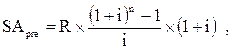 где — будущая стоимость аннуитета, осуществляемого на условиях предварительных платежей (пренумерандо);