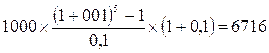 Пример: Необходимо рассчитать будущую стоимость аннуитета, осуществляемого на условиях последующих платежей (постнумерандо), по данным, изложенным В предыдущем примере (при условии Взноса платежей В конце года).