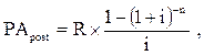 настоящая стоимость аннуитета, осуществляемого на условиях последующих платежей (постнумерандо), равна: