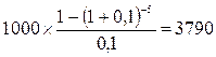 Пример: Необходимо рассчитать настоящую стоимость аннуитета, осуществляемого на условиях последующих платежей (постнумерандо), по данным, изложенным в предыдущем примере (при условии взноса платежей в конце года).