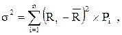 б) Дисперсия. Она характеризует степень колеблемости изучаемого показателя (в данном случае — ожидаемого дохода от осуществления финансовой операции) по отношению к его средней величине. Расчет дисперсии осуществляется по следующей формуле: