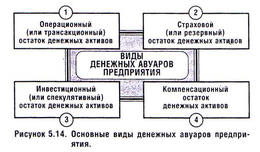 Формирование предприятием денежных авуаров вызывается рядом причин, которые положены в основу соответствующей классификации остатков его денежных средств (рис. 5.14.).
