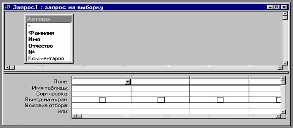Самое главное в запросе - возможность использования критериев выборки, которые вводятся в строку Условие отбора