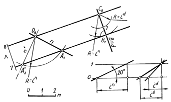 На рис.3.18 показано решение другой задачи – проведение в плоскости L через точку D прямой n с углом падения 20°:
