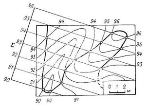 Построение линии пересечения топографической поверхности с плоскостью можно было бы рассматривать как случай построения геометрического места точек с глубиной залегания 0 м.