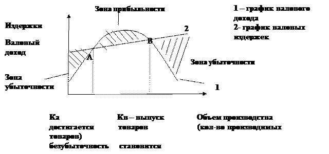 Из графика прибыльности видно, что прямая валовых издержек дважды пересекает кривую валового дохода.