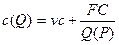 Необходимо составить функцию зависимости себестоимости единицы товара c(Q) от объема продаж Q(P) на основе формулы (4), подставив значения vc и FC, найденные в п.1.3. В результате получится формула (6).
