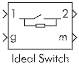 Модель ключа состоит из резистора Ron и ключа SW, соединенных последовательно. Работой ключа управляет блок логики. Включение прибора происходит при единичном положительном сигнале (g≥ 1) на управляющем входе. Выключается прибор уменьшением сигнала на затворе до нуля (g = 0). В модели параллельно самому прибору включена демпфирующая цепь из резистора и конденсатора, соединенных последовательно. Окно установки параметров идеального ключа Ideal Switchне требует особых пояснений.