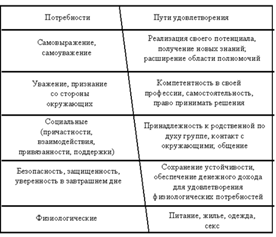 · Потребности самовыражения: данная группа объединяет в себе потребности, выражающиеся в стремлении человека к использованию своих знаний, способностей и умений для самоутверждения в бизнесе, менеджменте. Люди с данной потребностью открыты к восприятию себя и окружения, созидательны и независимы. При управлении такими людьми надо максимально реализовывать их способности, стремиться давать им оригинальные задания, предоставлять большую свободу в выборе средств и привлекать к работе.