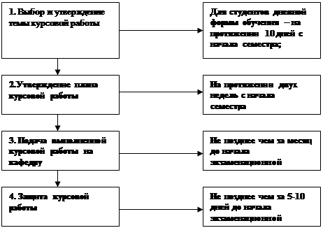 Кафедра определяет конкретные сроки выполнения, рецензирования и защиты курсовых работ согласно с нижеприведенной блок-схемой.