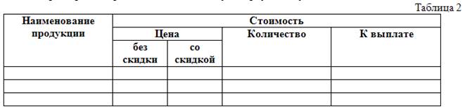 Заполните таблицу хотя бы одним данным и сделайте расчет суммы, к выплате с учетом скидки.