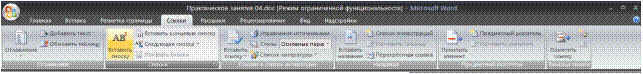 7. Установите курсор в конце третьего письма. Далее поставьте обычную сноску внизу документа с текстом «Третье письмо» используя инструмент Вставить сноску меню Ссылки (рис. 5).