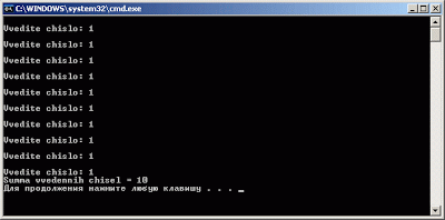 Пусть нам надо посчитать сумму 10 чисел введенных пользователем с клавиатуры.