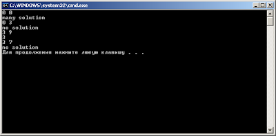 2) a=0 и b!=0 решений нет. Программа должна ответитьno solution