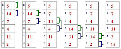 Рис. 4. Иллюстрация сортировки массива методом "пузырька".