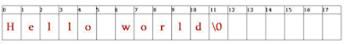 Как мы уже знаем, для хранения символов используются элементы типа char. Значит для хранения строки, мы можем использовать массив таких элементов. Единственным отличием такого массива, будет являться последний элемент. Компьютеру же как-то надо понимать, когда строка заканчивается? Это мы с вами видим, а у компьютера мозги кремниевые, он только нулики и единички понимает, и в них же и хранит всю информацию. Поэтому выбрали специальный символ, которым обозначается конец строки. Это символ с кодом нуль , его обозначают следующим символом – '\0’. Помните, я рассказывал про то, что первые 32 значения в таблице кодов ASCII застолблены под служебные символы. Вот это пример одного из них, самого первого. Изменим пример на картинке выше, чтобы он больше соответствовал действительности.