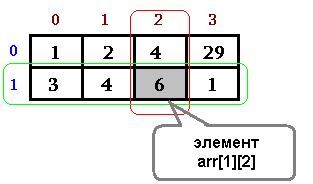 Рис.5. Обращение к элементу двумерного массива.
