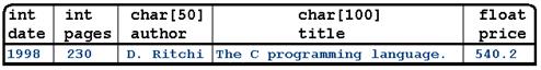 struct book kniga1 = {1998, 230, "D. Ritchi","The C programming language.", 540.2};