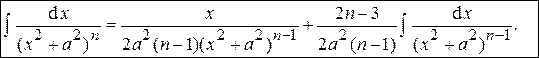За счёт применения интегрирования по частям удалось получить формулу (5.8) и уменьшить показатель степени знаменателя подынтегральной функции на единицу. Продолжая идти тем же путём, можно дойти до интеграла (4.2). Формулы типа (5.8) и называются рекуррентными.