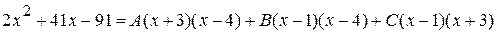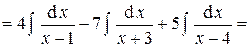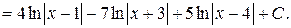 Решая эту систему, найдем А = 4; В = – 7; С = 5.