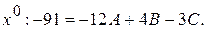 Приравнивая коэффициенты при одинаковых степенях x слева и справа от знака равенства, получим систему трёх уравнений с тремя неизвестными
