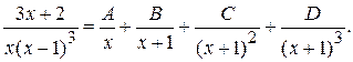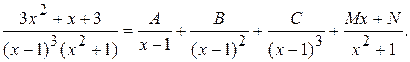 Приводя правую часть к общему знаменателю и приравнивая коэффициенты при одинаковых степенях в левой и правой частях равенства, получаем систему алгебраических уравнений относительно неизвестных коэффициентов разложения на простейшие дроби.