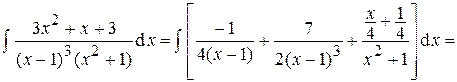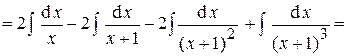 Пример 4. Случай, когда знаменатель подынтегральной функции имеет только действительные корни, причём некоторые из них − кратные