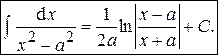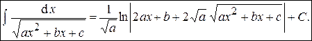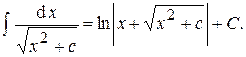 В частности, при получаем следующее важное дополнение к таблице основных интегралов