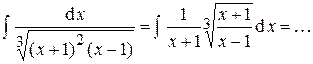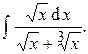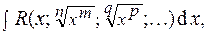 Здесь целесообразно воспользоваться подстановкой , где - общий знаменатель дробей и При этом подынтегральное выражение приводится к рациональной функции от переменной