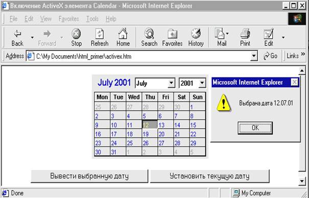 Рисунок - 1.2.12.1. Вид страницы с ActiveX Calendar