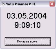 Цифровые часы, внешний вид которых показан на рис. 3, должны показывать текущую дату и время. Эта информация должна обновляться при щелчке по кнопке с надписью "Показать время".