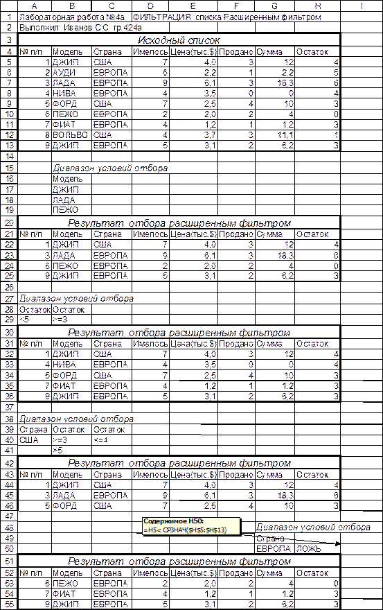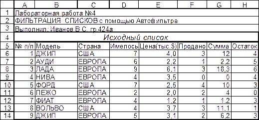 Типовое задание: Отсортировать список (см. ЛР №3) по значениям одного или нескольких столбцов и подвести промежуточные итоги в графах, содержащих числовую информацию