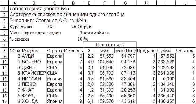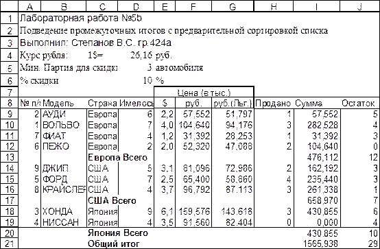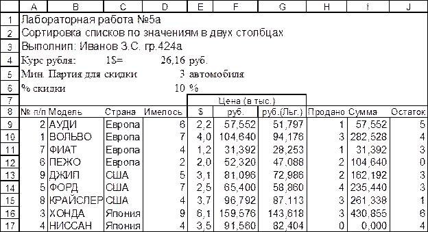 Типовое задание: Выполнить консолидацию данных из нескольких диапазонов без создания и с созданием связей с исходными данными. (Разновидности выполняемых типов консолидации предварительно согласовываются с преподавателем)