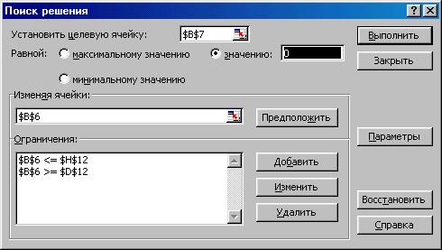 4. Вызвать диалог Поиск решения командой Сервис_Поиск решения