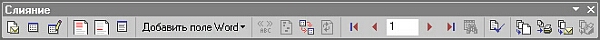 Коли користувач працює з основним документом, панель інструментів Слитие (Mill Merge)відображається на екрані, надаючи доступ до функцій цієї панелі.