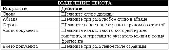 2. Выберите в таблице самый простой способ выделения текста.