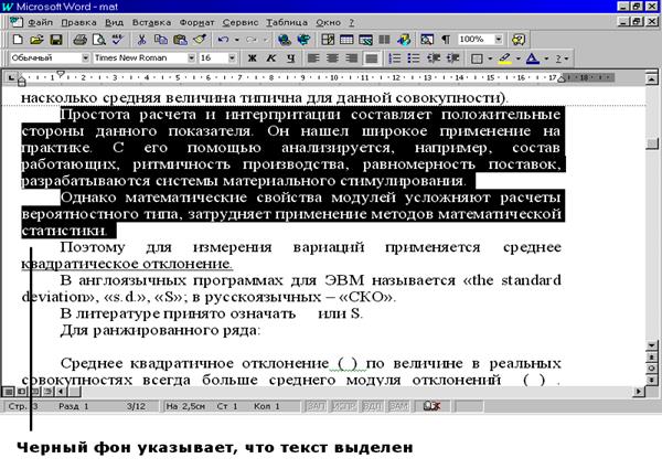 Программа Word существенно упрощает копирование, перемещение, форматирование и удаление слов, предложений и абзацев. Сначала текст нужно выделить, а затем применить к нему атрибуты форматирования символов и абзацев. Закончив работу с выделенным текстом, щелкните в любом месте документа, чтобы снять выделение.