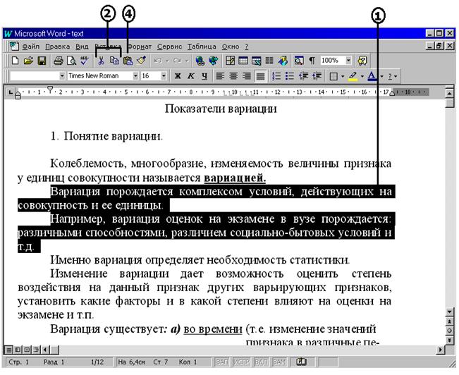 Перемещение и копирование текста с помощью панели инструментов Стандартная