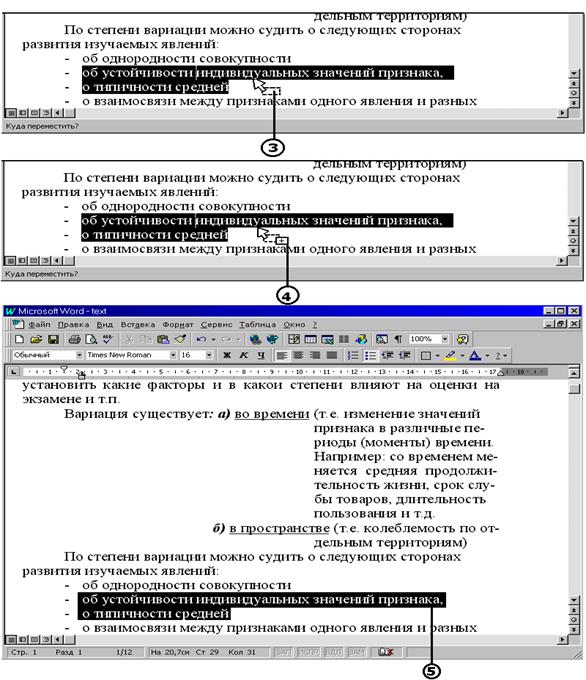 Перемещение и копирование текста методом «Перетащить и отпустить»