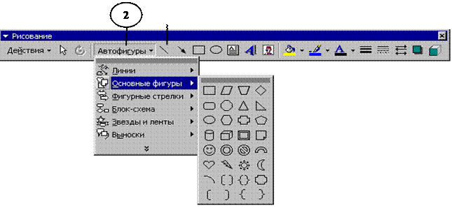 2. На панели инструментов Рисование щелкните команду Автофигуры выберите категорию Линии или Основные фигуры, а затем выберите нужную линию или фигуру.