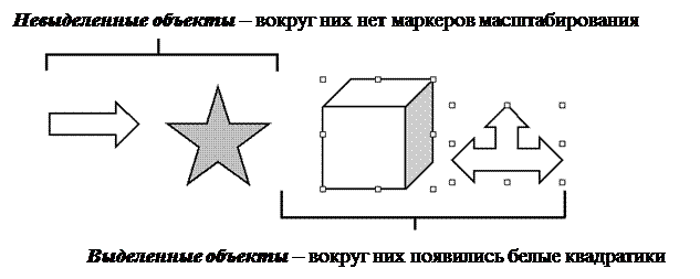 Для работы с объектом его сначала нужно выделить. Далее его можно перемещать, и масштабировать с помощью маркеров масштабирования – маленьких квадратиков, появляющихся на границе объекта после его выделения щелчком мыши.
