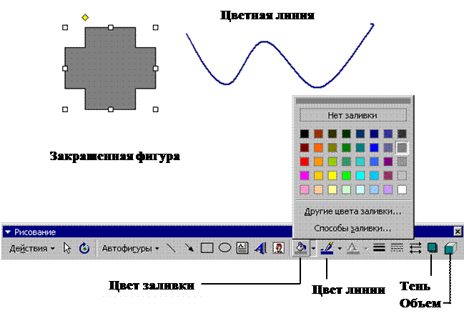 § Для закрашивания выделенной фигуры щелкните стрелку рядом с кнопкой Цвет заливки, а затем выделите нужный цвет.